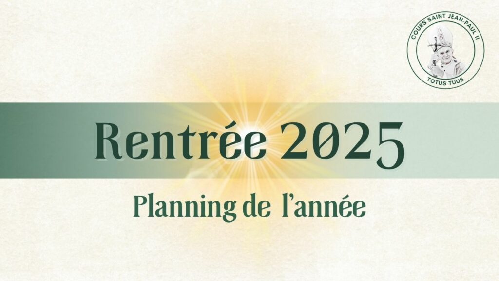 La rentrée 2025-2026 approche, toute l’équipe enseignante et le conseil d’administration sont ravis de vous accueillir au sein du Cours Saint Jean Paul II ! Jour de la rentrée 2025-2026 Les enfants de maternelle sont attendus le jeudi 4 septembre 2025: – le matin : rentrée des Petites Sections– l’après-midi : rentrée des Moyennes et Grandes sections […]