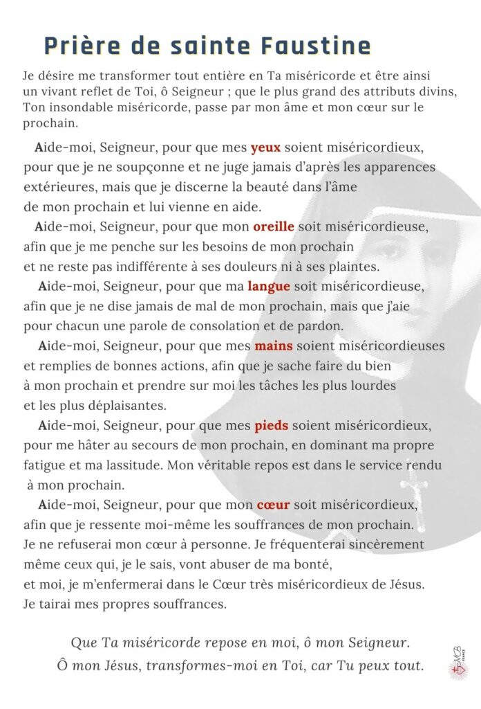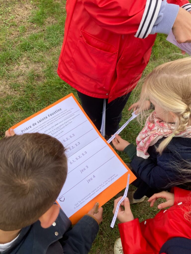 En chemin, un grand jeu les attendait autour de la prière de sainte Faustine (ci-dessous). On riait, on courait, on réfléchissait : « Comment la miséricorde passe-t-elle par nos yeux ? Nos oreilles ? Nos mains ? Nos pieds ? Notre langue ?» Les enfants découvraient que Dieu peut toucher leur cœur à travers chacun de leurs sens, et qu’ils pouvaient eux aussi être instruments de miséricorde pour leurs camarades.