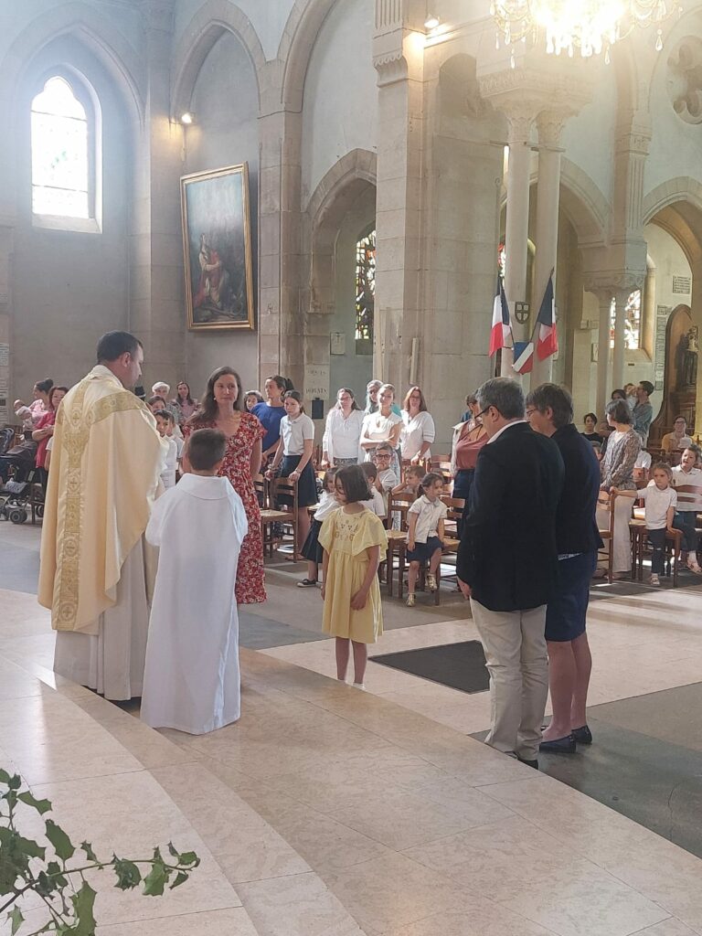 Autour d’elle, toute l’école était réunie pour partager cette immense joie. Ses camarades de CP, avec leur maîtresse, avaient préparé une jolie chanson pour l’accueillir dans la grande famille des chrétiens. Les sourires, les chants et l’émotion ont rempli l’église, transformant cette célébration en une véritable fête de la foi.
